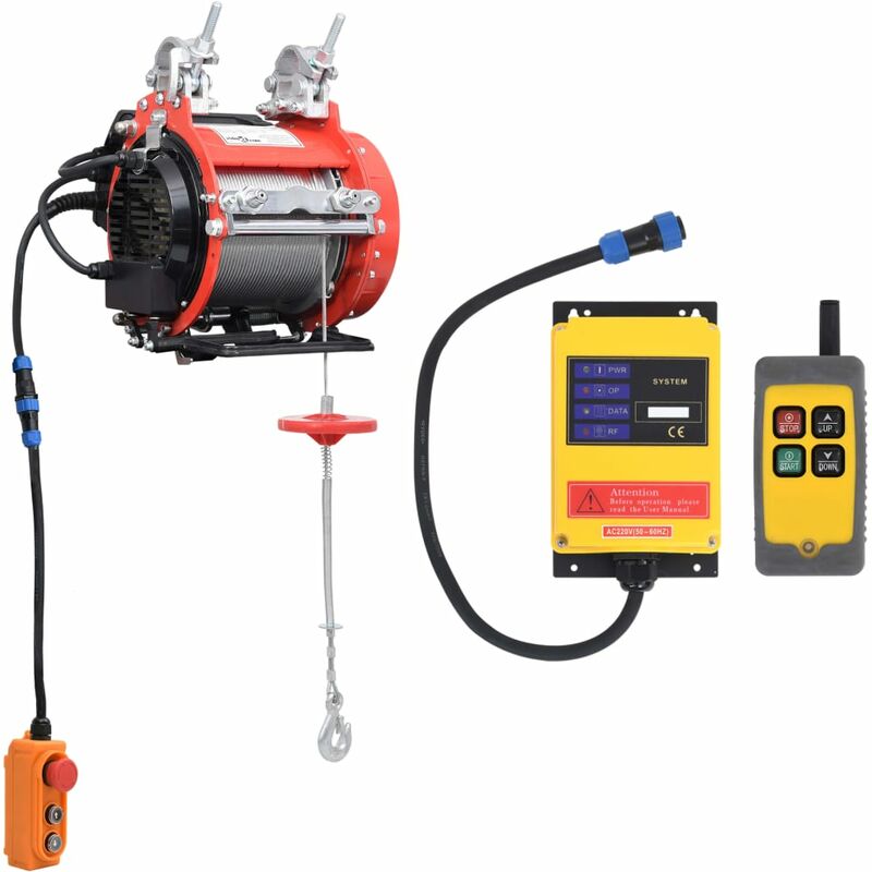 Questo paranco elettrico è facile da fissare alle impalcature grazie al suo design unico e alla sua forma elegante. Rende molto più facile e sicuro il trasporto di materiale da costruzione, ecc. ai piani superiori e ai tetti. Il suo motore potente ed esente da manutenzione è ideale per un'ampia gamma di lavori di sollevamento. È costruito per durare, grazie alla sua costruzione robusta e al cambio migliorato. Dispone di un telecomando con cavo da 1,9 m e di una presa d'aria per il collegamento del telecomando wireless. Il telecomando wireless è incluso in modo da poter rimanere a terra e fare il sollevamento di carichi pesanti con una mano. La fune d'acciaio è progettata per ridurre la torsione. Ha due metodi di utilizzo: è possibile utilizzare un cavo singolo per sollevare un massimo di 400 kg o un cavo doppio per sollevare un massimo di 800 kg. Inoltre, questo paranco elettrico è dotato anche di un interruttore di arresto di emergenza, di un freno automatico e di un dispositivo di