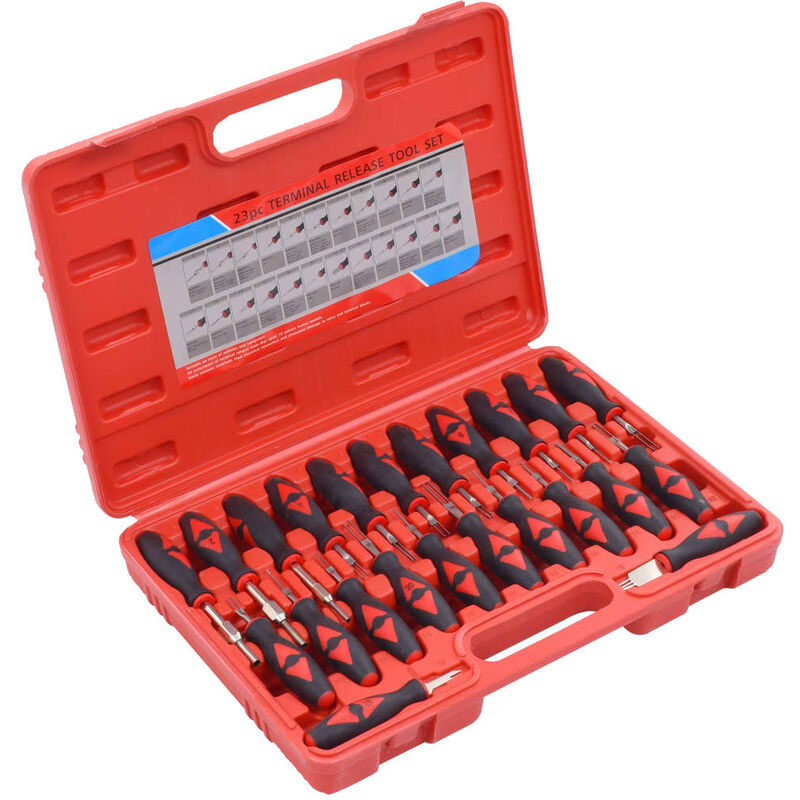Materiale: Plastica Adatto per contatti a innesto circolari e piatti Adatto a quasi tutti i tipi di veicoli La consegna include 23 elementi riposti in una custodia stampata tramite soffiaggio Il nostro set di strumenti di sblocco è progettato per lo sblocco non distruttivo dei contatti a innesto sull'elettronica del vostro veicolo. I nostri attrezzi sono adatti per contatti circolari e piatti che includono quasi tutti i tipi di veicoli come VW, Opel, Ford, Mercedes-Benz, Audi, BMW e Renault. Tutti i pezzi vengono consegnati in una pratica custodia, formata tramite soffiaggio, per una facile conservazione e un comodo trasporto. Materiale: Plastica Adatto per contatti a innesto circolari e piatti Adatto a quasi tutti i tipi di veicoli La consegna include 23 elementi riposti in una custodia stampata tramite soffiaggio