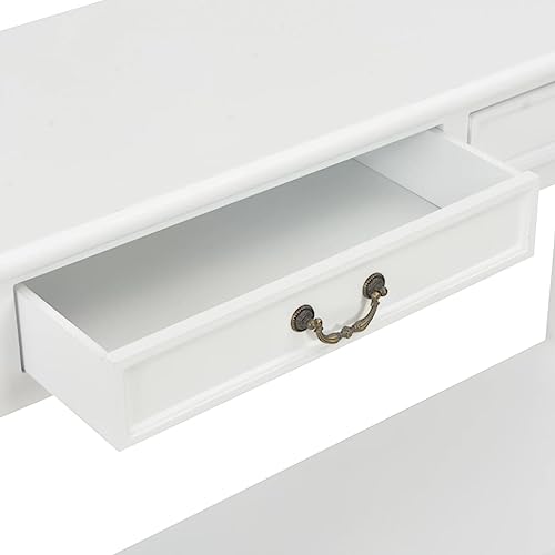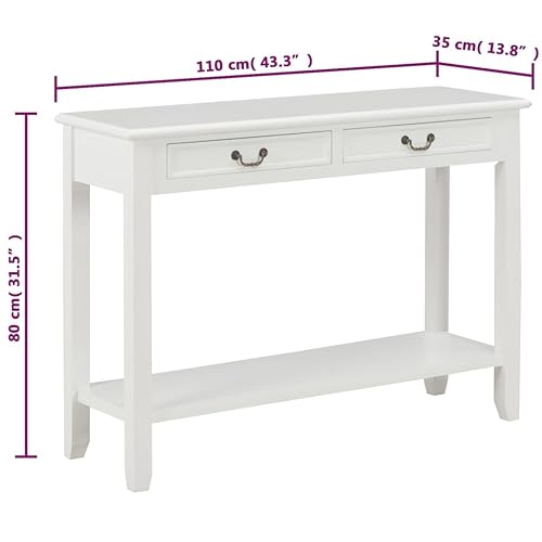 VidaXL Tavolo Consolle Stile Classico con Cassetti Mobiletto Tavolino Ripiano MDF Finitura Paulownia Bianco Legno Massello di Pino