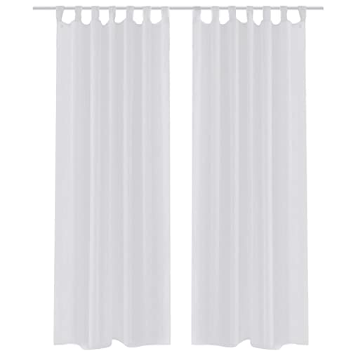 VidaXL 2x Tenda Trasparente di Voile con Corde Bianche Tendine Casa Tendaggi