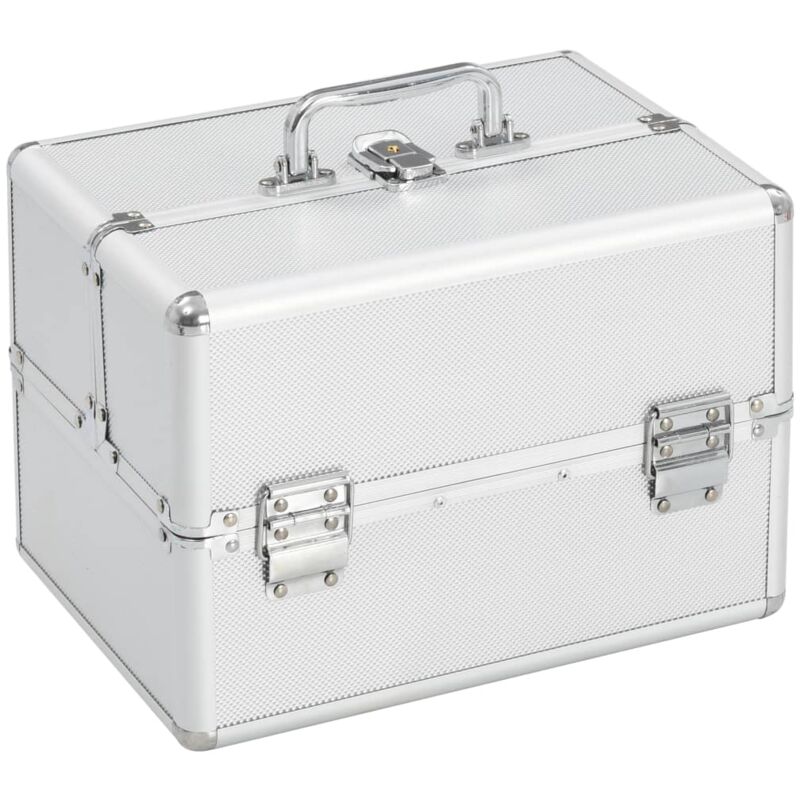 Riponete tutti i vostri prodotti di bellezza in unico luogo grazie alla nostra valigia trolley! Questa borsa per cosmetici � la soluzione ideale per mantenere i vostri trucchi ben organizzati. Potete inserire tutto il necessario in questo pratico beauty case e portarlo con voi ovunque! Realizzata in legno, fogli in ABS e alluminio, questo beauty case vi permetter� di conservare facilmente i vostri cosmetici e li manterr� in perfette condizioni. Il beauty case � dotato di una parte superiore e di ripiani estensibili ed offre ampio spazio per cosmetici e prodotti di bellezza. Inoltre � dotato di una pratica maniglia per poterlo portare sempre con voi ovunque andiate. Colore: Argento Materiale: Alluminio, ABS e legno Dimensioni: 22 x 30 x 21 cm (L x P x A) Con parte superiore e ripiani estensibili Possibilit� di essere chiuso a chiave (una chiave inclusa) Con maniglia di trasporto