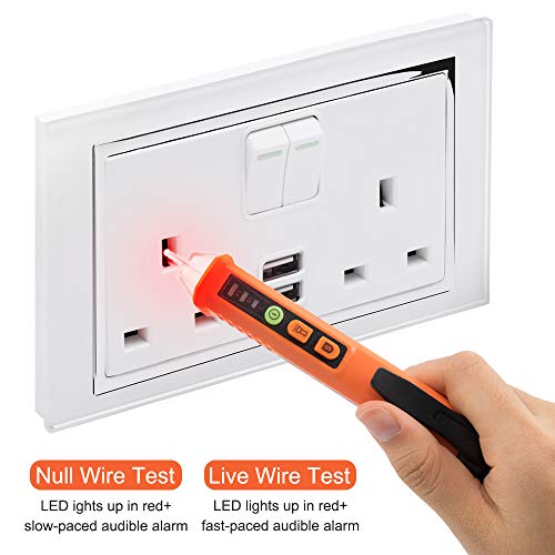 Avviamento tensione automatica: funziona con 2 batterie AAA da 1,5 V (non incluse), spegnimento automatico dopo nessuna operazione per 3 minuti per risparmiare energia. Costruzione leggera e durevole con pratica clip tascabile, uno strumento pratico perfetto per elettricisti o per un uso quotidiano.