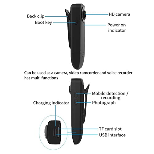 RILEVAMENTO DEL MOVIMENTO: con il rilevamento del movimento, quando un oggetto si muove, la mini body camera rilascerà un segnale e registrerà automaticamente il video. Adatto a una varietà di scenari: sport all'aria aperta, ciclismo in bicicletta, escursionismo, raccolta di prove ecc.