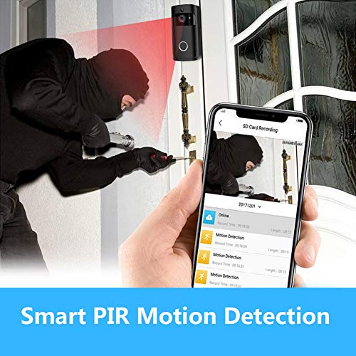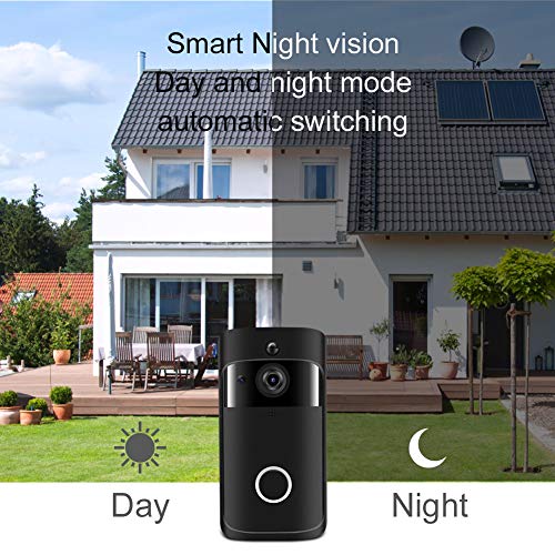Videocitofono, 1080p HD 166 gradi Telecamera antifurto wireless grandangolare con visione notturna e IR, Rilevamento movimento PIR, collegamento wifi, riduzione del rumore 2D / 3D(Black)