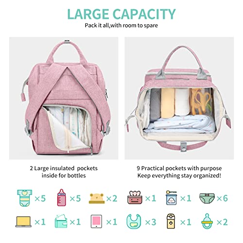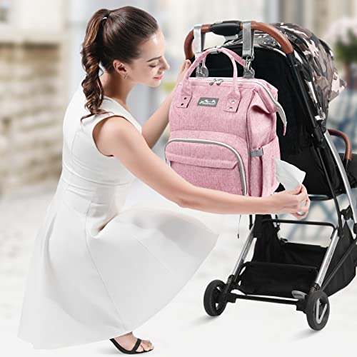 Viedouce Borsa per Pannolini Zaino Fasciatoio, Zaino Mamma,Impermeabile Resistente Ai Graffi Stoffa Oxford Grande Capacità Borsa, con Fasciatoio Portatile e 2 Ganci di Passeggino (Rosa)