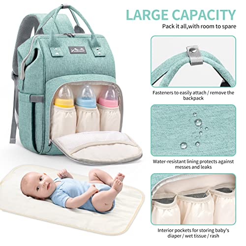 Viedouce Borsa per Pannolini Zaino Fasciatoio, Zaino Mamma,Impermeabile Resistente Ai Graffi Stoffa Oxford Grande Capacità Borsa, con Fasciatoio Portatile e 2 Ganci di Passeggino (Ciano)