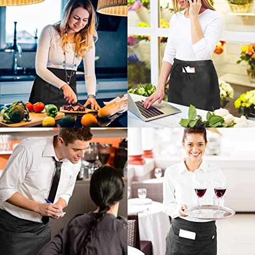 Viedouce 2 Packs Grembiuli,Vita Corta Grembiule da Cucina Impermeabile con 2 Tasche per Server Ristorante Chef Cameriera Cameriere Mixologo Fiorista Mezza,Grembiule per Uomo Donna (Nero)