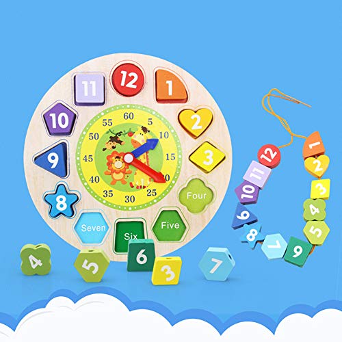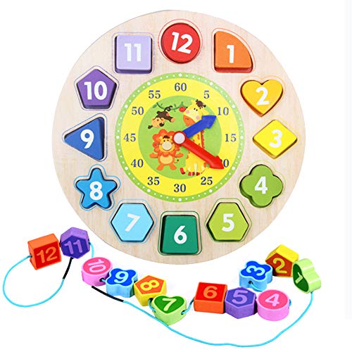 Vientiane Orologio l'Apprendimento Bambini Legno, Orologi l'Apprendimento dei Giocattoli Legno con Numeri e Forme, Apprendimento del Colore dei Numeri per Bambini, Bambini Piccoli, Ragazzi e Ragazze