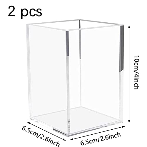 Vientiane Portapenne in Acrilico, 2 Pezzi Portapenne Trasparente, Portamatite da Scrivania di Forma Quadrato, Portapenne in Acrilico Trasparente, Portapenne Da Scrivania per Ufficio, Scuola, Casa