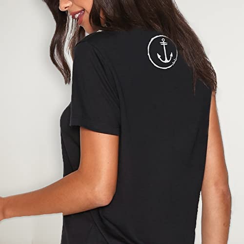 VIENTO Minimal Anchor Maglietta con Scollo a V Donna (Nero, S)