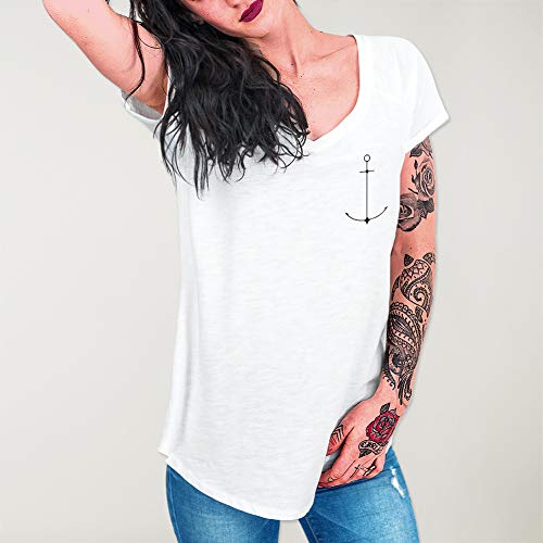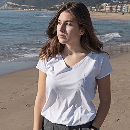 VIENTO Minimal Anchor Maglietta con Scollo a V Donna (Bianco, S)