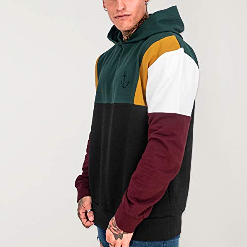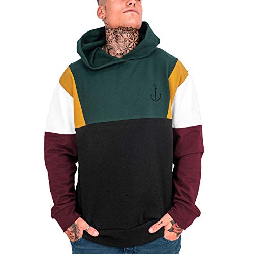VIENTO Patch Suburbs Anchor Simple Hoodie Uomo (Nero, XXL)