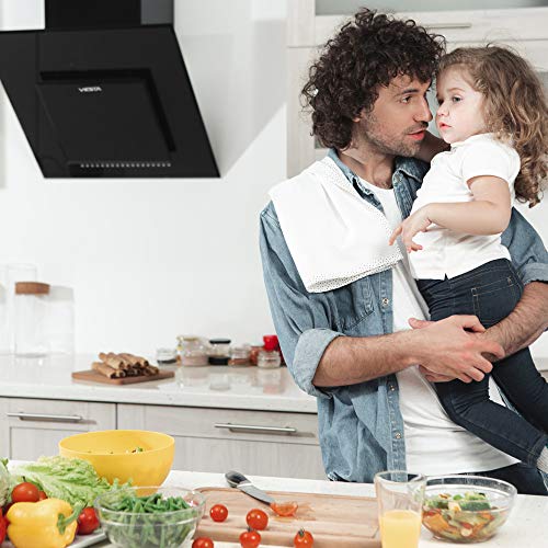 VIESTA DH600XA Cappa aspirante 60cm 230W incl. Filtro di carbonio attivo - Cappa da cucina/Cappa da parete con sensore di controllo tattile, con luce LED, fatto in vetro nero e acciaio inox