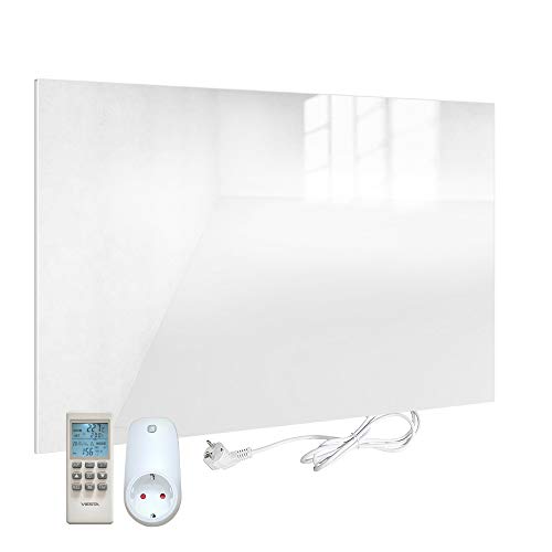 VIESTA H450-GW - Riscaldamento a infrarossi in vetro, 450 Watt, bianco, con interruttore on/off + termostato VIESTA TH15