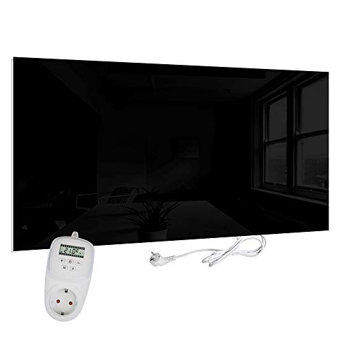 VIESTA H580-GS - Riscaldamento a infrarossi in vetro, 580 Watt, nero, con interruttore on/off + termostato VIESTA TH12