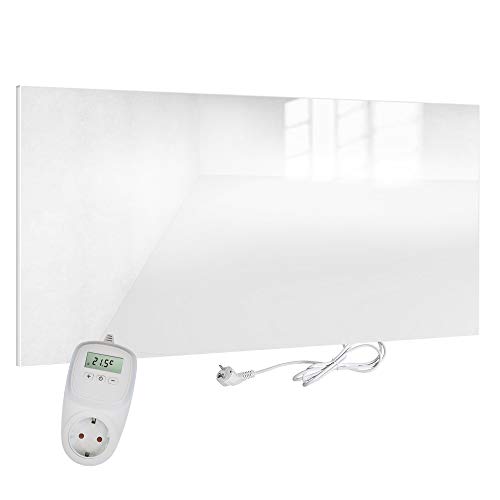 VIESTA H580-GW - Riscaldamento a infrarossi in vetro, 580 Watt, bianco, con interruttore on/off + termostato VIESTA TH10
