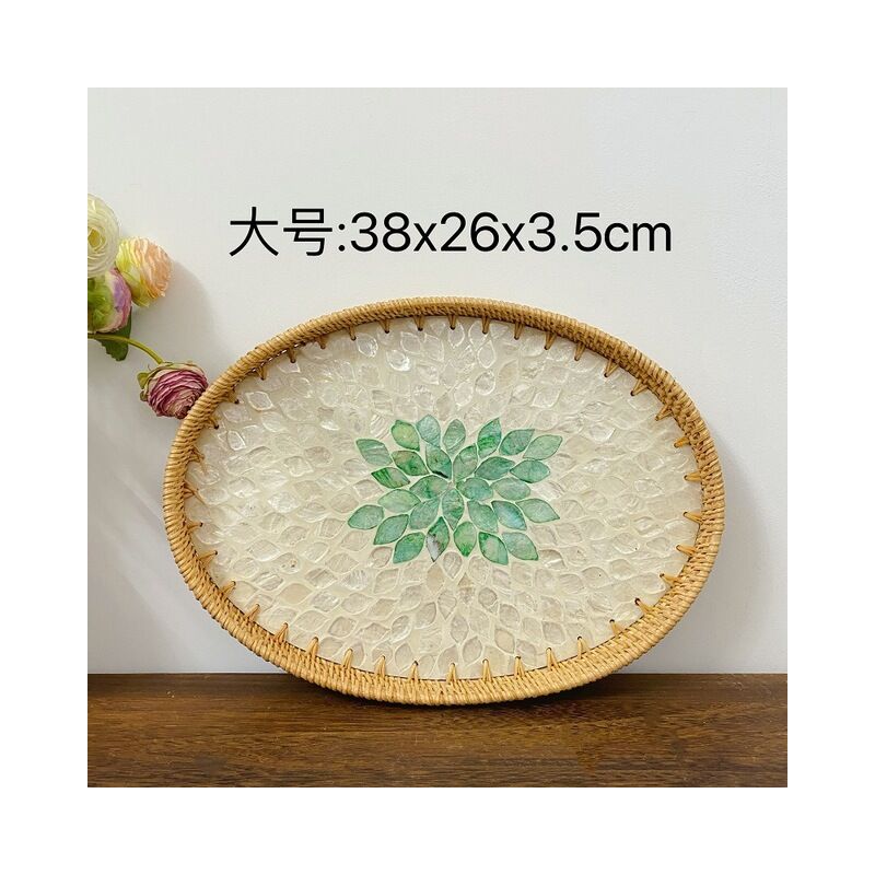 Informazioni sul prodottoNome: cesto di frutta con guscio in rattanMateriale: rattanFormato: piccolo 32x22x3cmMedio 34x23x5cmGrande 38x26x3.5cmCaratteristiche: questo cesto di frutta è realizzato in rattan selvatico dal maestro vietnamita.