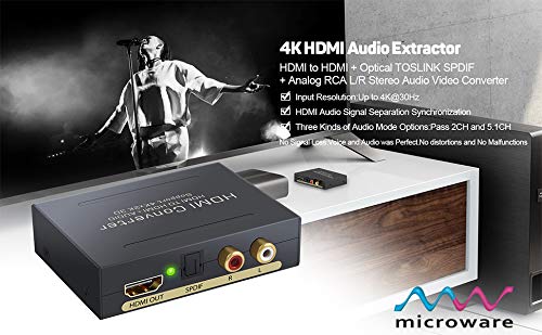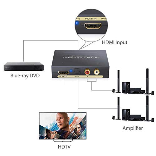 ViewHD HDMI Audio Extractor Support Ultra HD | 4K | Arc | MHL | TOSLINK Optical Audio Output + RCA L/R Audio Converter | VHD-H2HARC (This is The Newest !!!)