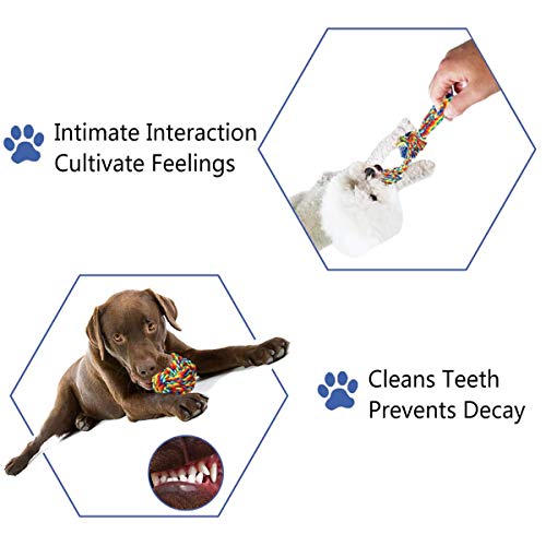 【Ideale per Cani di Taglia Piccola e Media】VIEWLON Giocattoli per Cani con una palla strettamente annodata, pallonetto lungo, corda "osso" e nodo di corda per caramelle, ideale per cani di piccola e media taglia. 4 diversi giochi di corda possono soddisfare le diverse esigenze dei tuoi animali domestici, giocare con questi giocattoli non si annoierà facilmente e manterrà i tuoi cani felici, in salute e divertiti.
