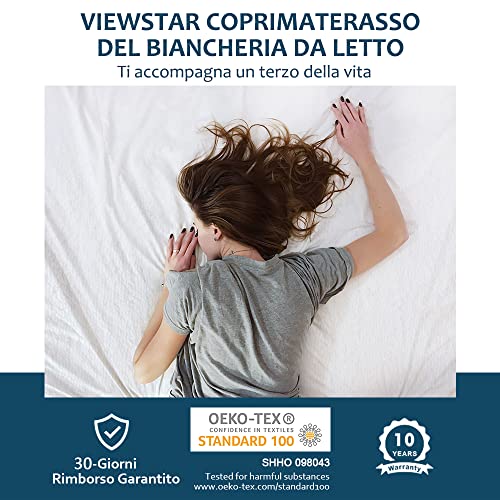 Viewstar Coprimaterasso Matrimoniale Impermeabile 160x190/200cm, Coprimaterasso Impermeabile, Tessuto Cotone Oeko-tex, Protezione Materasso con con 4 Angoli Lacci Elastici, Antiacaro, Lavabile