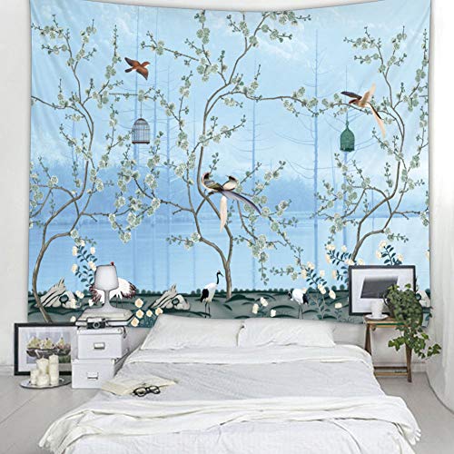 VIFERR Arazzo da Parete Grande arazzo da Letto con Fiori e Uccelli Blu Bohémien(150 * 200cm)