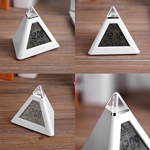 VIFERR Sveglia a Piramide, Sveglia LED Che Cambia Colore, Sveglia Elettronica da Tavolo, Sveglia a Termometro, Orologio Digitale con Schermo LCD