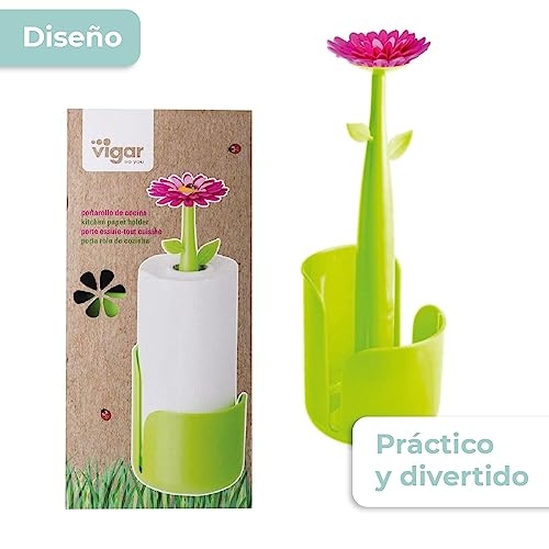 VIGAR Flower Power - Portarotoli da Cucina, Colore Verde e Magenta