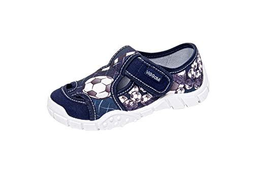 Viggami ragazzo pantofola con chiusura in velcro Adas, Blu (Dunkelblau/Bälle), 34 EU