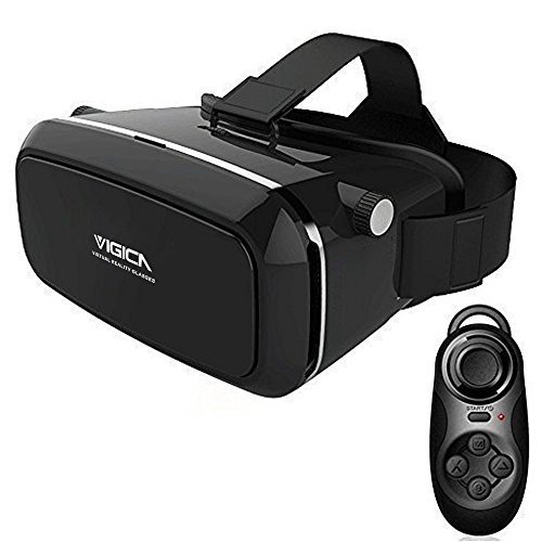 VIGICA 360 Viewing Immersive Virtual Reality 3D VR Headset Google Cardboard 3D Video Games Glasses Compatible with 4.7-6.0 inches iPhone Android Smartphone with Remote Controller