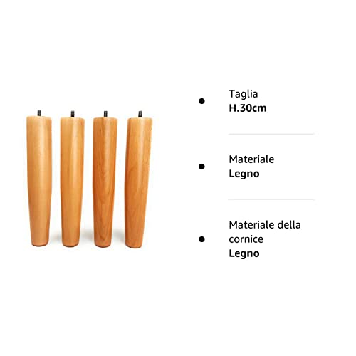 Viglietti Set di 4 Pezzi Piedi Faggio per Reti a Doghe in Legno, H 30 cm