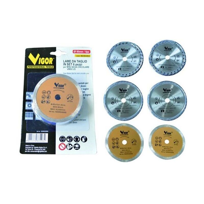 Codice: 8011779372962 Marca: VIGOR-BLINKY. Vigor Accessori Miniseghe Set Lame 6 Pezzi D.Mm. 85