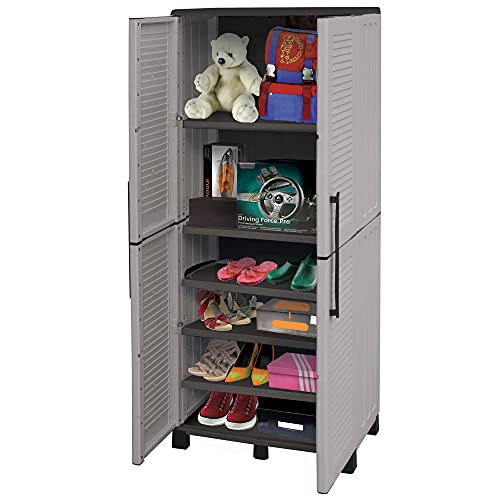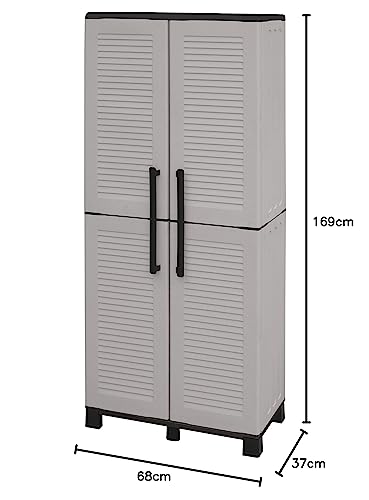 Vigor Blinky 28315-10 Armadio Alto in Resina, con 2 Porte e 3 Ripiani, 68x37x169, Grigio