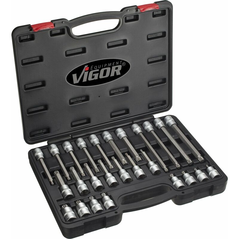ViGOR Set di inserti per cacciaviti, numero articolo: V1918, EAN: 4047728019187, Applicazione: azionamento: quadrato 12,5 mm (1/2 pollici), estrusione: profilo interno XZN, larghezza chiave: M5 - M16, per azionamento manuale