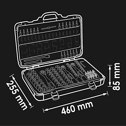 Potente: la pratica scatola per chiavi a bussola per il funzionamento manuale combina potenza e precisione, grazie ai diversi cricchetti reversibili a denti fini da 6,3 mm, 10 mm (3/8"), 12,5 mm (1/2")