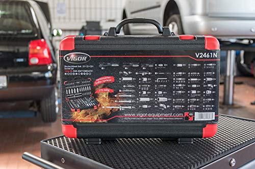 Vigor V2461N - Set di chiavi a bussola, 172 pezzi, con cricchetto reversibile ed estensioni, varie punte e chiavi a bussola, ampio set di dadi per funzionamento manuale