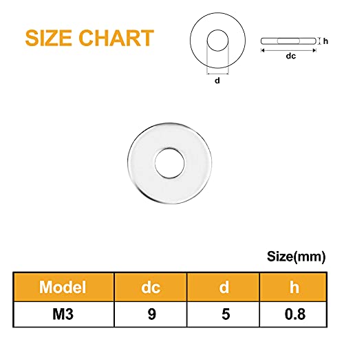 VIGRUE Rondelle M3 grandi, 50 pezzi, in acciaio inox A2 V2A, rondelle M3 x 9 mm, dischi per carrozzeria DIN9021/ISO7093, rondelle in metallo per viti e dadi e barra filettata