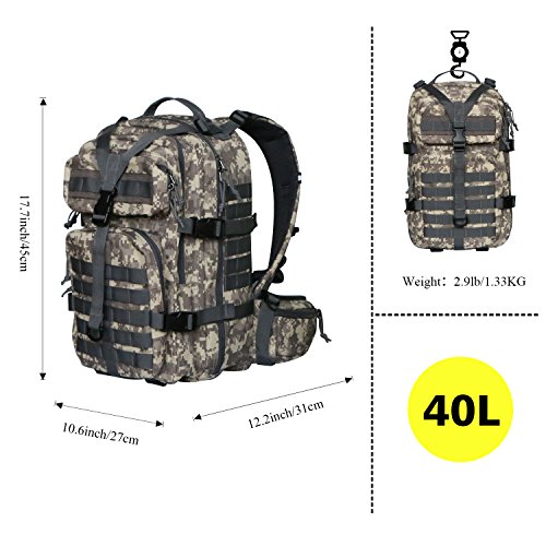 Vihir Zaino tattico militare 40L - Esercito Molle Bug Out Bag Sport Zaino Outdoor per escursioni all'aperto Escursionismo Camping Trekking Caccia, ACU