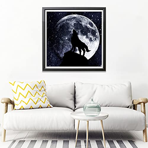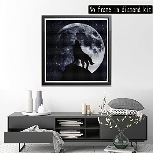 Viiegor 5D Diamond Painting Kit Completo Luna Lupo, Fai da Te Pittura Diamante Animale, Trapano Completo Ricamo Punto Croce con Strass Arte E Artigianato Decorazione per Casa E Pareti 35x35cm