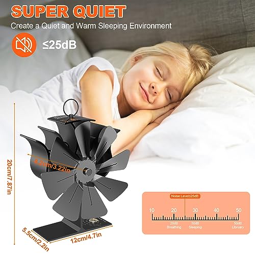 【Design Aggiornato a 8 Pale, Riscaldamento Efficiente Della tua Stanza】 Rispetto al tradizionale design a 6 pale, la ventola della stufa a legna a 8 pale ha una velocità del vento massima di 2200 giri/min e un volume d'aria massimo di 200 CFM, che può trasferire riscaldare un'area più ampia e una distanza maggiore, la trasmissione dell'aria calda può raggiungere 5 m/196,8 pollici e l'efficienza del riscaldamento della stanza aumenta del 200%.