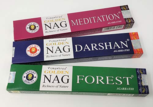 Vijayshree Sterling Effectz A40 - Bastoncini di incenso Golden Nag, Forest, Darshan, Meditazione con Souvenir