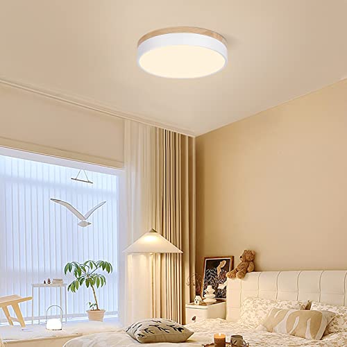Vikaey Moderna Legno Plafoniera LED Soffitto,24W Rotondo Lampade soffitto Dimmerabile con Telecomando,per Cucina Camera da Letto Ristorante Soggiorno Corridoio Ufficio -Bianco(30x6.5cm)