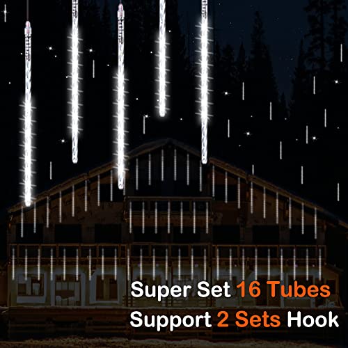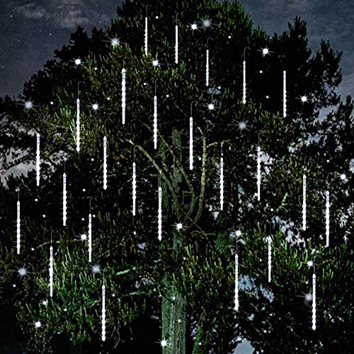 Vikdio Pioggia di Meteoriti Luci Della Pioggia, 30cm 16 Tubi a Spirale 480 LEDs Impermeabile Luci di Stringa per Natale Halloween Albero del Giardino Home Decor, Supporto 2 Set Gancio (Bianca)
