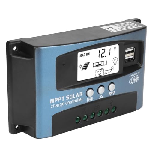 Vikenar Regolatore di Carica Pannello Solare MPPT 100A, USB Display LCD 12V/24V Controller di Carica Solare Dual