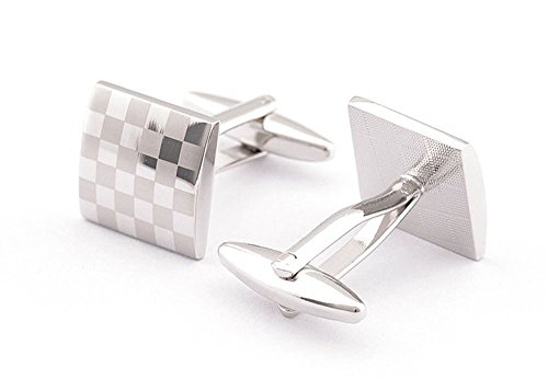 Vikenner - Gemelli quadrati a scacchiera, alla moda, per camicia, gemelli, camicia, accessori, nodo per polsino da uomo, per lavoro, matrimonio, regalo (argento)