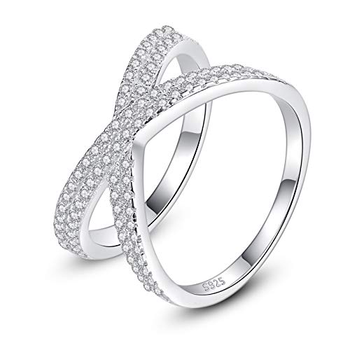 VIKI LYNN Anello a X in argento Sterling 925 con zirconia cubica per donne, Argento sterling 925 Placcato in oro bianco 18 carati. Zirconia cubica, zirconia cubica,