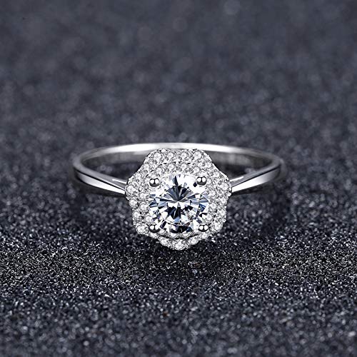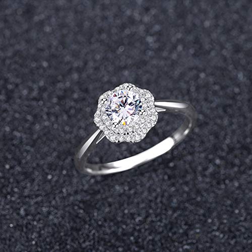 VIKI LYNN - Anello di fidanzamento da donna in argento Sterling 925 con fiore e zirconia cubica e Argento, 52 (16.6), cod. AQER003013-5.5