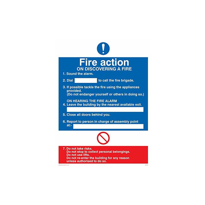 Viking segni mf325-a3p-acFire Action on scoprire un incendio Sign, in alluminio, composito, 400 mm altezza x 300 mm larghezza