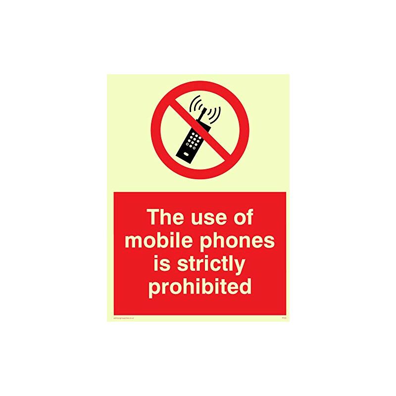 Viking segni pv50-a5p-pL' uso di telefoni cellulari sono rigorosamente vietato Sign, plastica, semirigida, 200 mm altezza x 150 mm larghezza Fotoluminescenti