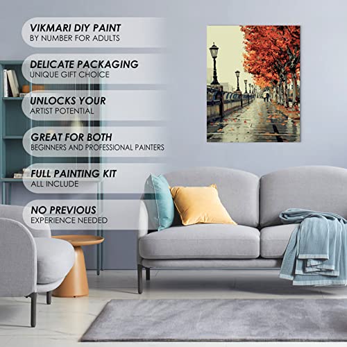 VIKMARI Pittura con numeri per Adulti Pittura su Tela Fai da te 16 x 20 Pollici Kit di Pittura per numero Strada - Strada decidua (senza cornice)