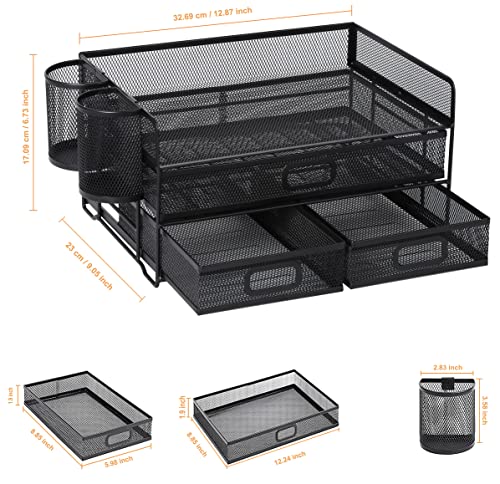 Vikmyer Organizzatore del desktop a 3 vassoi con cassetto, restitrici da ufficio in rete Forniture per ufficio Organizzatore Documento Lettera Supporto per ufficio per ufficio Home (2 portapenne)